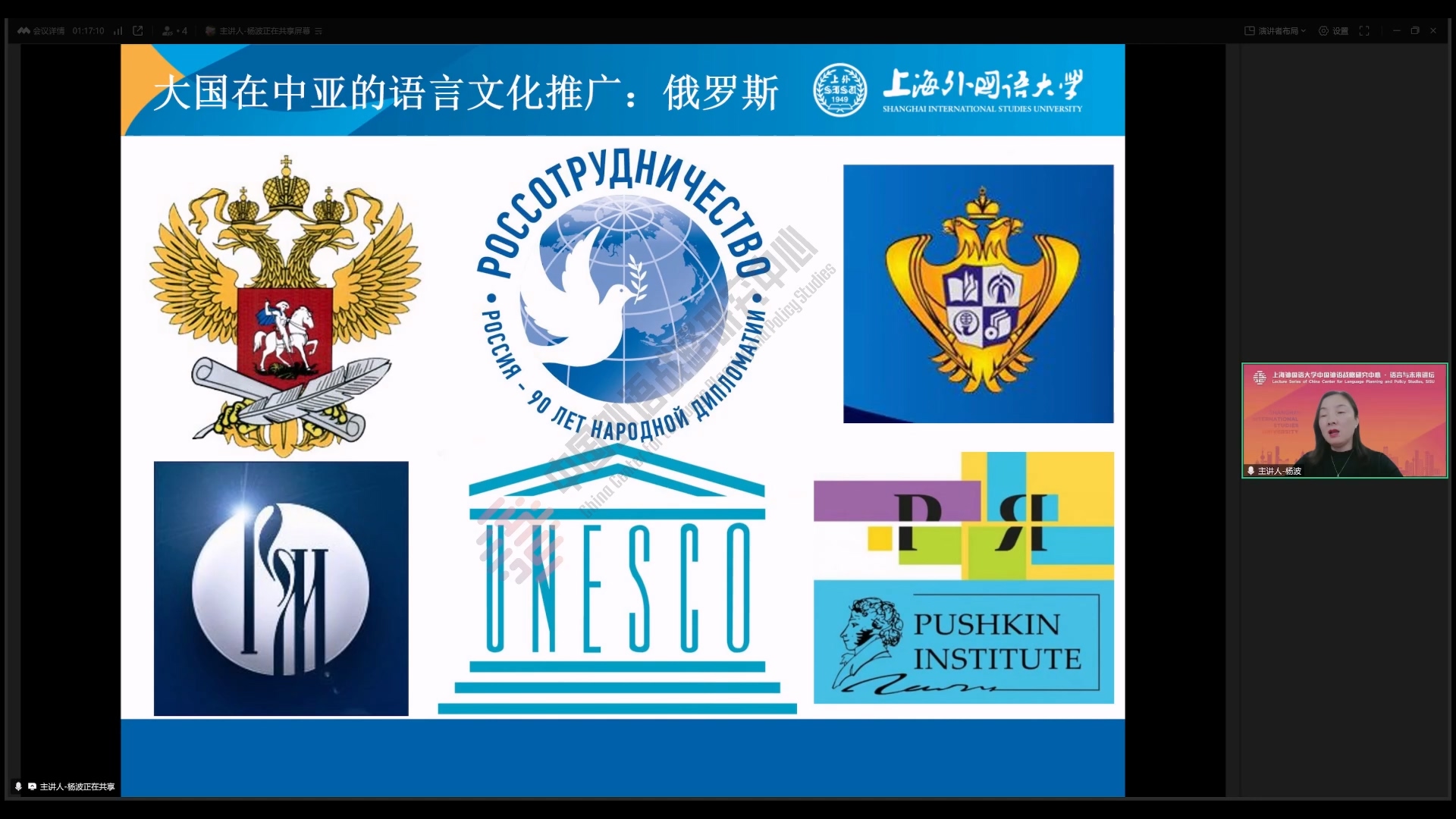 杨教授在讲座中聚焦各国语言文化推广的差异化路径。美国强调机制成熟与项目多样性,欧盟注重教育理念输出的隐蔽性,俄罗斯通过顶层设计强化俄语国际影响力,土耳其依托历史文化纽带打造区域认同。杨波教授特别提到,中国在中亚的语言推广以孔子学院为核心,结合中文+职业教育模式,正在探索符合地区需求的特色路径。
