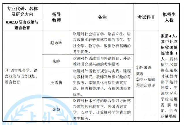 上海外国语大学语言科学研究院博士研究生报考信息简表.xlsx