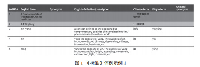 2007年,世界中医药学会联合会(以下简称“世中联”)发布《中医基本名词术语中英对照国际标准》(以下简称《世中联标准》)。该标准由世中联在68个国家和地区的中医药学会成员研制,作为国际组织标准,向其会员组织推荐使用。该标准包含6526个词条,每个词条包含中文名称、汉语拼音和英译对应词。