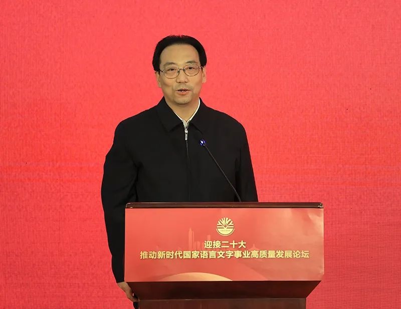 田学军指出,国家语委举办“迎接二十大,语言文字这十年”系列活动,全面总结新时代语言文字事业奋进历程与发展成就,共话语言文字事业高质量发展壮阔前景,为迎接党的二十大胜利召开营造良好氛围。他强调,语言文字战线要坚持以习近平新时代中国特色社会主义思想为指导,认真贯彻党中央、国务院关于语言文字工作的决策部署,落实全国语言文字会议精神,推动语言文字事业高质量发展,满足人民日益增长的优质语言教育和语言服务需求,为加快推进教育现代化、建设教育强国、办好人民满意的教育,为全面建设社会主义现代化国家提供有力支撑。