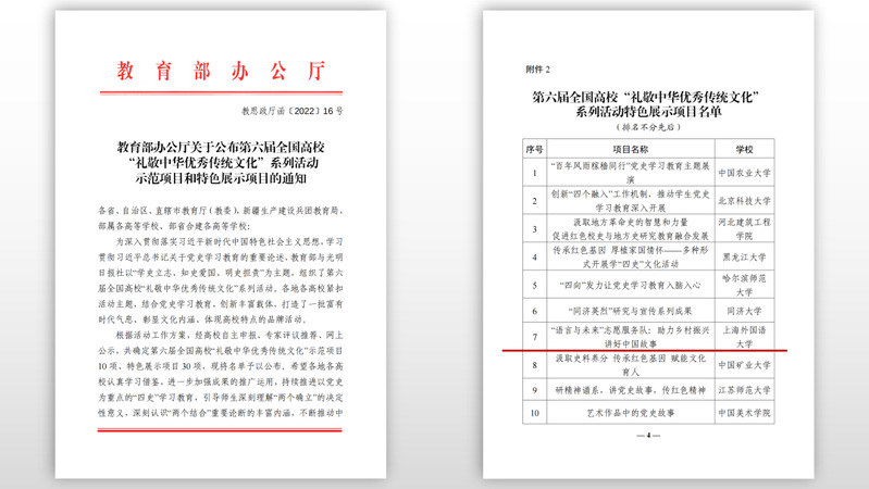 多举措服务社会,为提升语言治理能力贡献力量。提交资政报告49篇,分别被教育部语信司、社科司、教材局、高教司、语合中心等采纳。深度参与国家外语课程标准制定、上海市语言立法和重大外语教育政策制定,组织开展上海市公共场所外文使用常态化监测。在第六届全国高校“礼敬中华优秀传统文化”系列活动遴选中,《“语言与未来”志愿服务队:助力乡村振兴 讲好中国故事》获评全国特色展示项目。