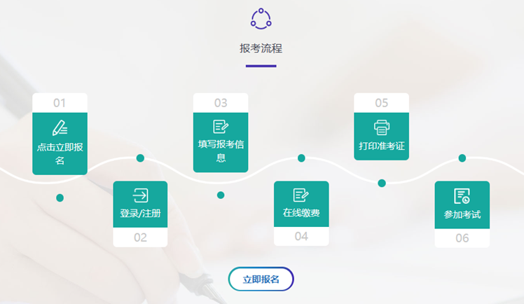 考生需在跨文化能力测试中心网站(https://ict.sflep.com/)上的“跨文化能力考试”板块报名,如下图。点击“立即报名”进行注册、登录、填报个人信息及缴费。建议考生使用电脑端登录操作。