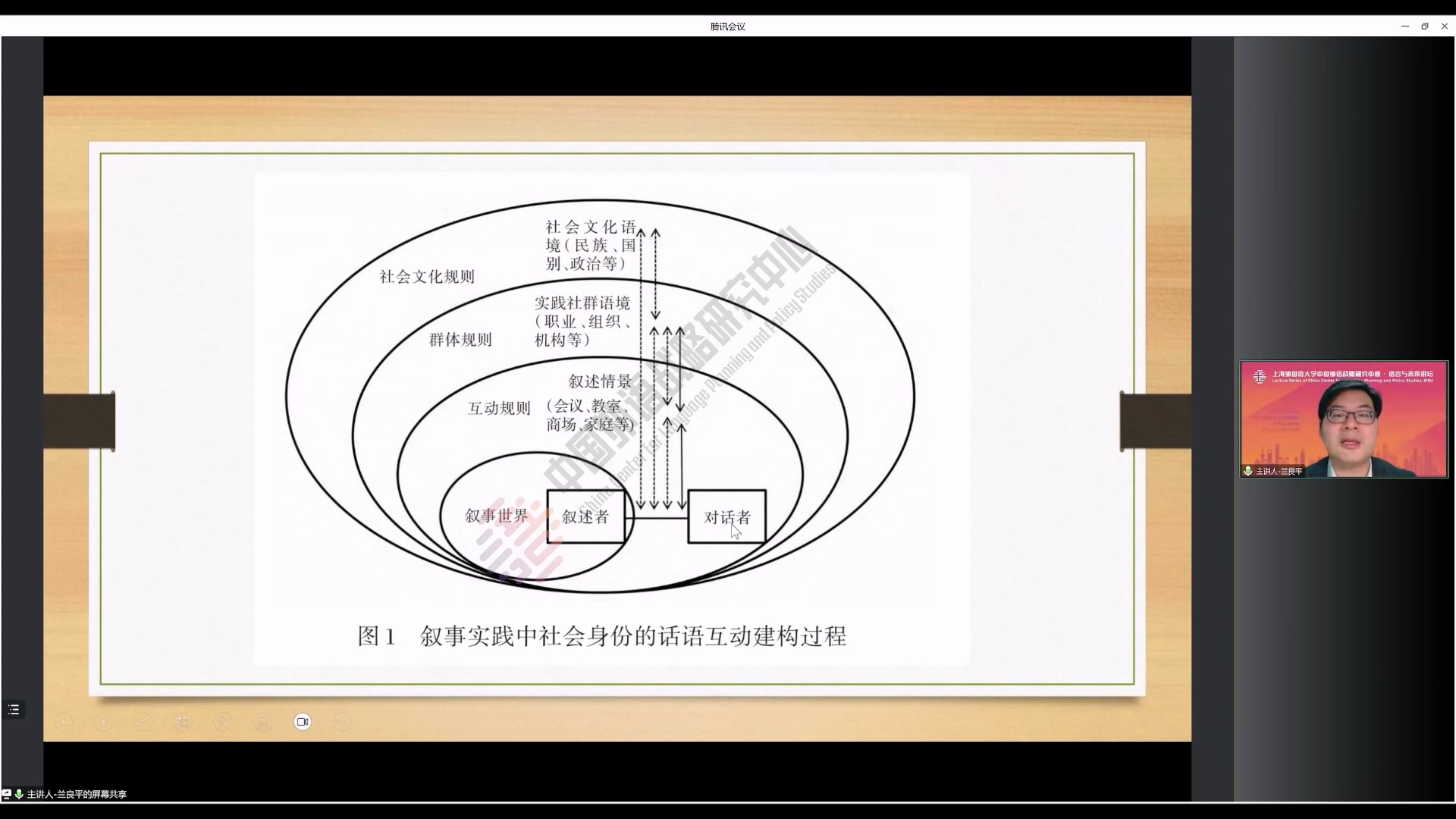 讲座结束前,兰教授与在线观众进行了问答互动,回答了观众关于叙事者对话者角色身份、跨文化叙事结构研究与伯恩斯坦语码理论的异同关系、叙事与身份建构的语言联系、定位理论书籍推荐等问题。此次讲座让大家对叙事分析的范式转变和会话叙事分析的具体过程有了一定的了解,扩充了听众的研究方法储备。