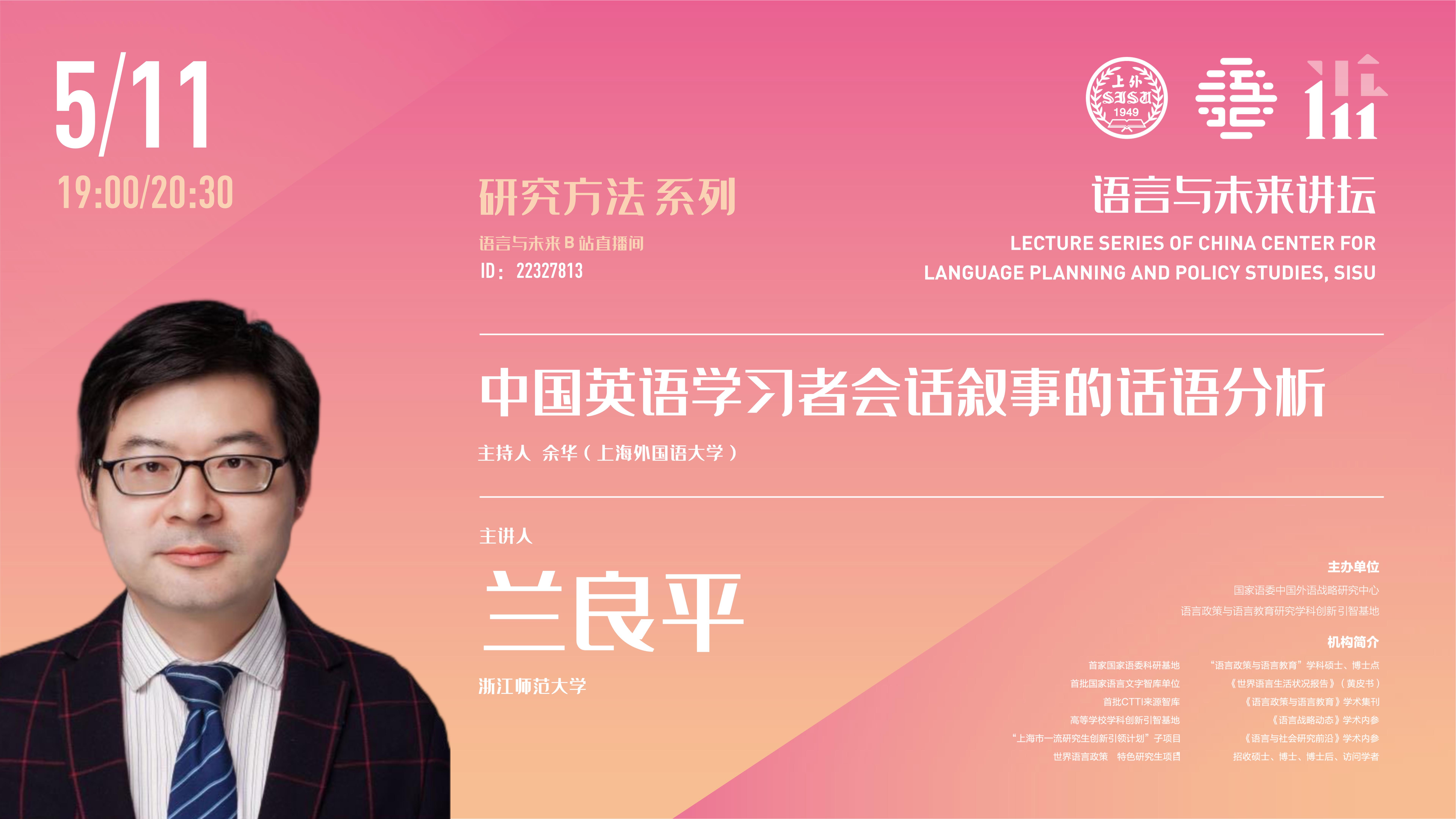 2023年5月11日,浙江师范大学兰良平教授做客上海外国语大学中国外语战略研究中心“语言与未来”讲坛,做了题为《中国英语学习者会话叙事的话语分析》的学术讲座。讲座由中国外语战略研究中心副主任余华副教授主持,近400位校内外师生在线参加。