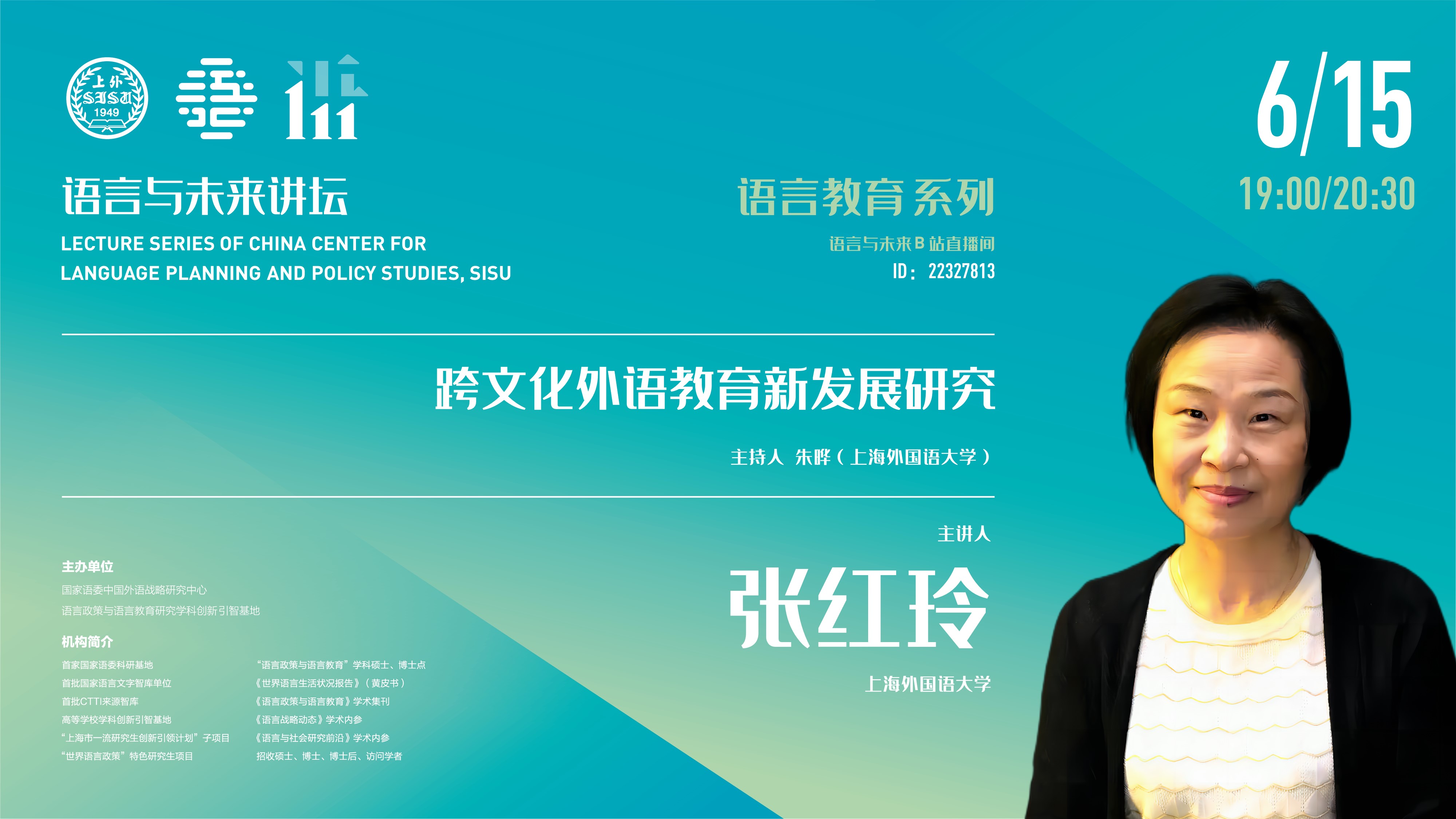 2023年6月15日晚,上海外国语大学跨文化研究中心主任、中国跨文化交流研究委员会副会长、美国富布莱特研修学者、明尼苏达大学和杜克大学访问学者张红玲教授做客中国外语战略研究中心的“语言与未来”讲坛,做了题为《跨文化外语教育新发展研究》的学术讲座。讲座由中心副主任朱晔教授主持,来自全国各大高校和研究机构的近500位师生在线参加。