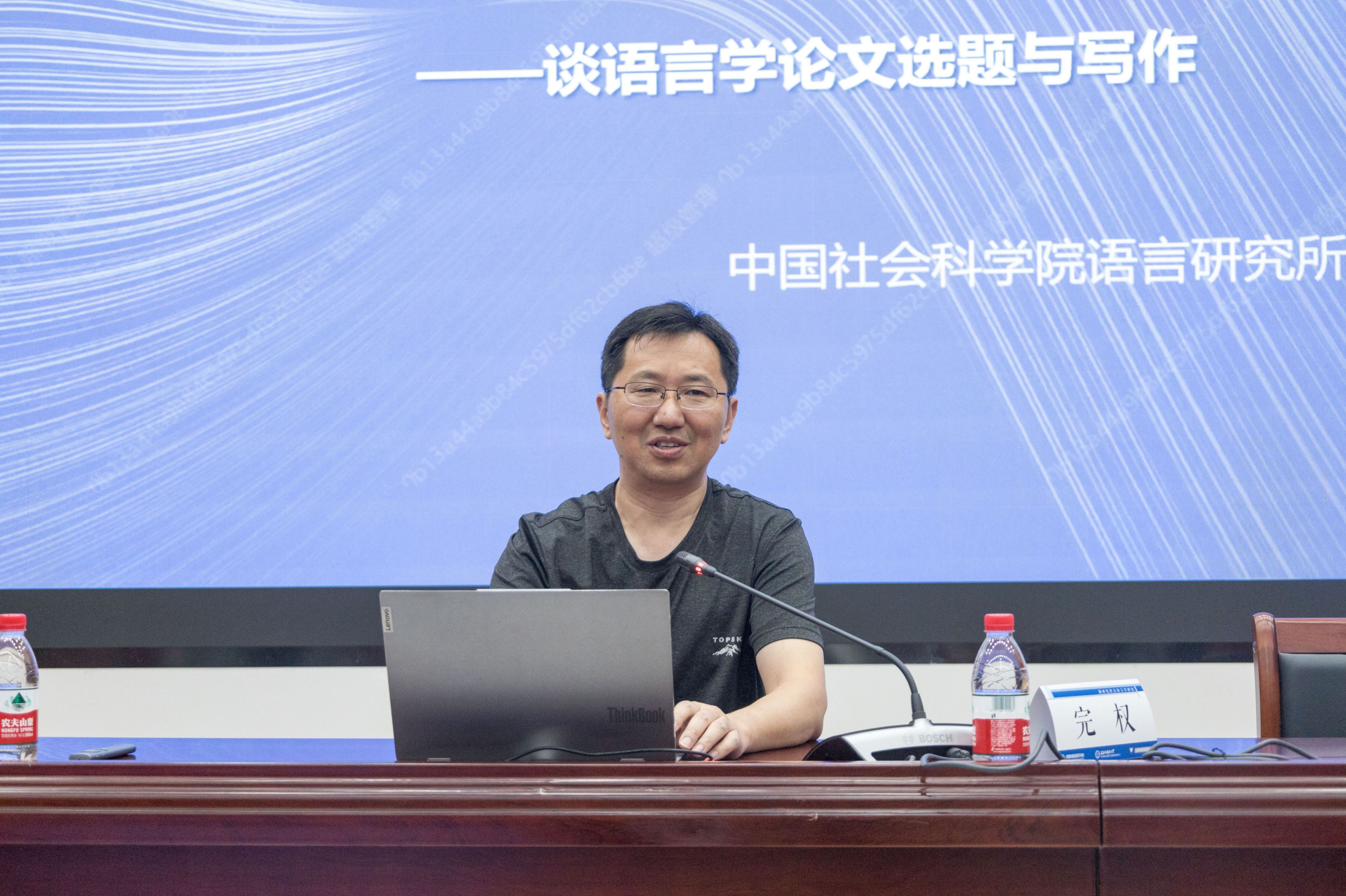 第二场工作坊题为《学术期刊论文选题与写作》,由中国社会科学院语言研究所研究员、《当代语言学》主编完权和教育部语言文字应用研究所研究员、《语言文字应用》执行主编王敏进行报告。完权研究员首先介绍了《当代语言学》的发展历史、办刊宗旨和编审理念,随后分别从研究性论文和学术评论两个方面结合具体的论文实例讲解了应该如何写作期刊论文以及如何选题。王敏研究员介绍了《语言文字应用》的发展概况、主要特点、办刊理念以及社会贡献,并对语言文字应用研究的问题意识、研究性质、研究者定位和研究方法等方面进行了介绍与讨论。