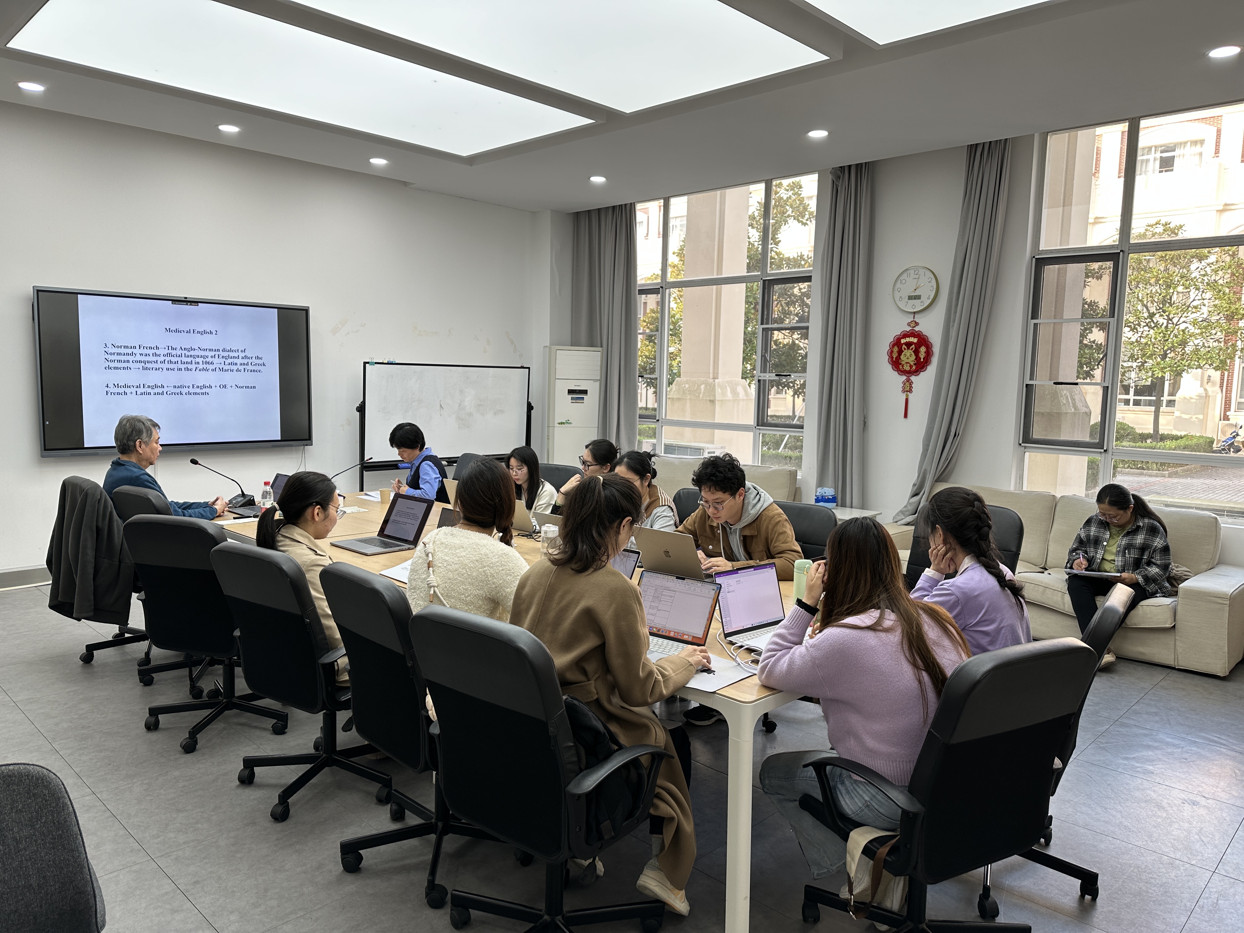 讲座中,李教授运用丰富的史料和细致的考证,将复杂的学术问题阐述得深入浅出。他对文献的追根溯源、对概念的历史考辨,展现了扎实的学术功底,也为探讨中西文化交流开辟了新的视角。每场讲座后的讨论环节都十分热烈,师生们就英语词源演变、文学概念转型、东西文化交流等议题与李教授展开深入对话。