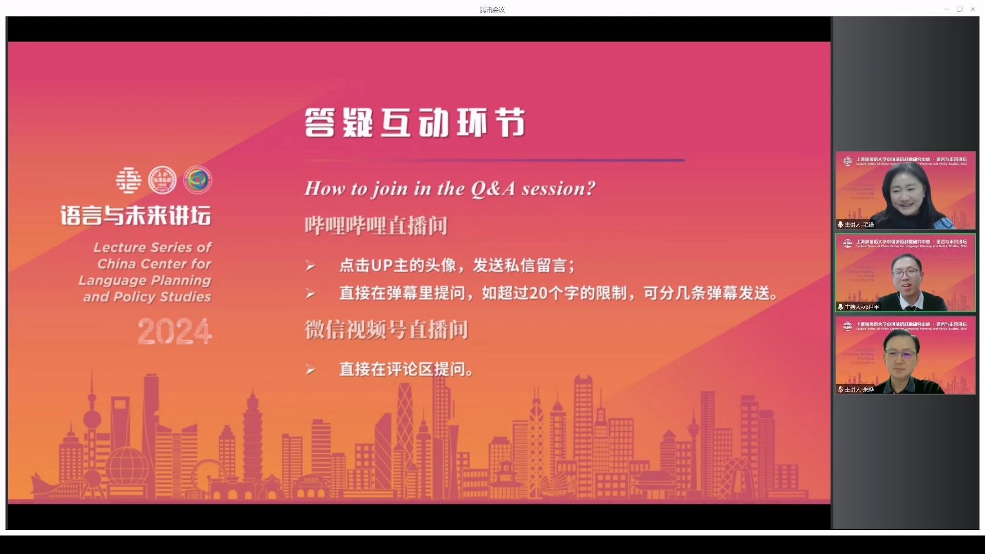 在讲座最后的互动交流环节,朱晔教授和毛峰副教授详细回答了听众们提出的各类问题,指出未来教学中可以通过情绪调节和动机提升的综合策略,可以使学生在学习过程中更加积极主动,从而推动汉语教学质量的提升。