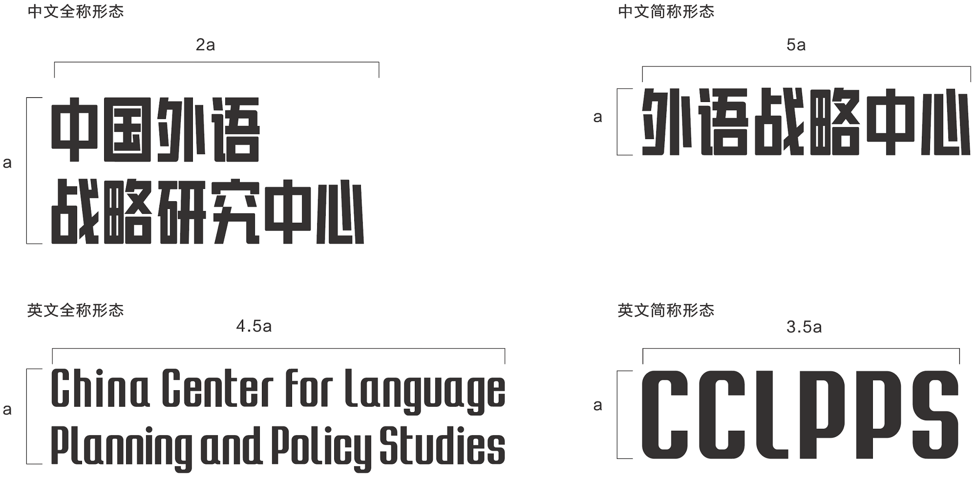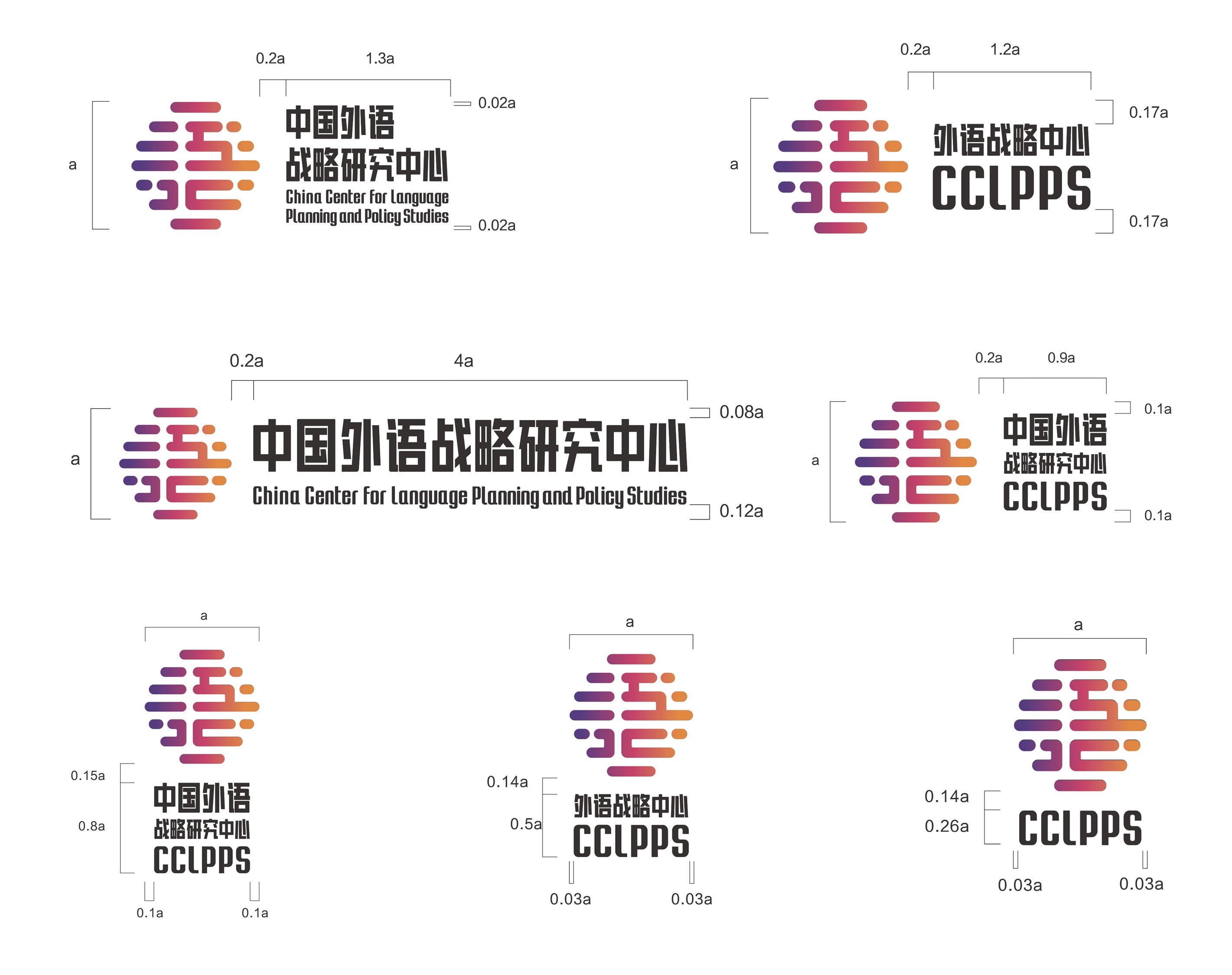 中心图形标识采用“语”字,融入代表全球融通的球形,寓意“语言在世界中,世界在语言中”。整体图形类似莫尔斯密码,寓意“研究和掌握外语就像找到打开密码的钥匙”。中心标识总共有7种组合形态,适应各类不同的版式与设计要求。